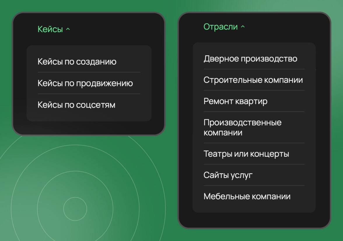Не просто описали услугу-1 и услугу-2, а подробно расписали что конкретно мы предлагаем для каждой отрасли — выводим в ТОП поисковых систем Яндекс и Google, результаты работы.