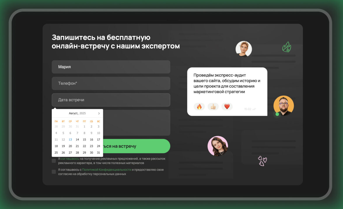 Особое внимание уделили интерактиву. Добавили калькулятор расчёта окупаемости. Пользователь вводит параметры, сразу получает ориентир и может отправить заявку. Сейчас это один из самых кликабельных блоков.