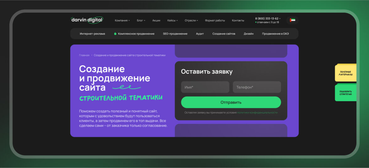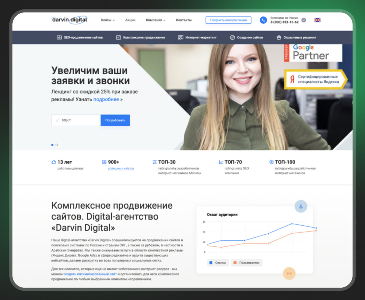 Оставить заявку на SEO-продвижение, аудит, бесплатную консультацию или просто посмотреть, какой классный сайт у нас получился, можно здесь — darvindigital.ru.