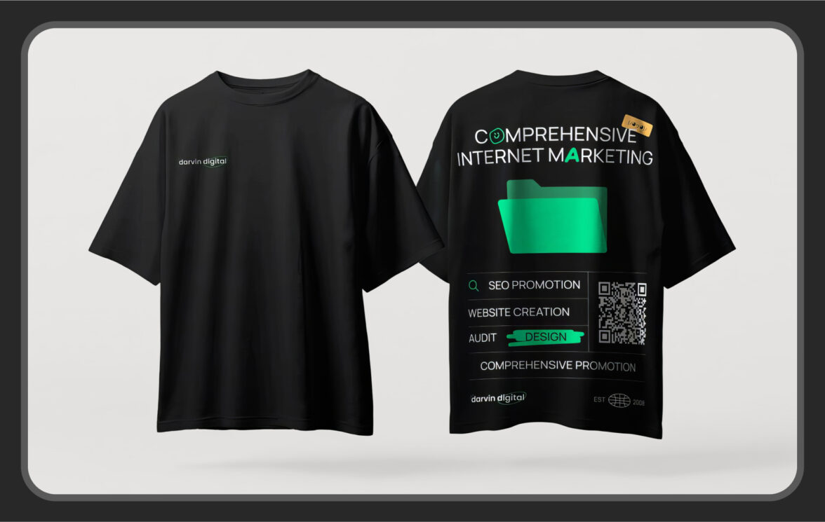 Помимо этого, позаботились о том, чтобы обновлённый фирменный стиль внедрить повсеместно. Мы адаптировали под свежий стиль все носители: визитки, шаблоны документов, презентации, графику для соцсетей. Даже заказали мерч для команды — футболки, стикеры, чтобы ощущать сопричастность к новому образу и закрепить новое лицо Darvin Digital во всех точках контакта с аудиторией.