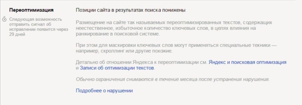 Как выйти. Повторить комплекс мер для выхода из-под фильтра «Переоптимизация», при этом также рекомендуют: