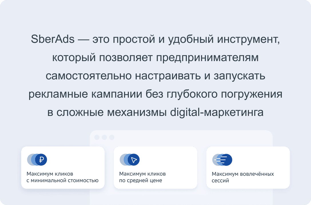 С регистрацией в SberAds предприниматели получают точный таргетинг на основе 250+ сегментов аудитории, собранных на базе недоступных ранее рынку данных, группы компаний Сбера, что позволяет показывать рекламу только тем клиентам, которым она действительно интересна. Алгоритмы искусственного интеллекта и установленный на сайте рекламодателя счетчик статистики SberAds анализируют поведенческие данные пользователей и автоматически оптимизируют кампании, снижая стоимость клика и повышая конверсию в целевое действие.