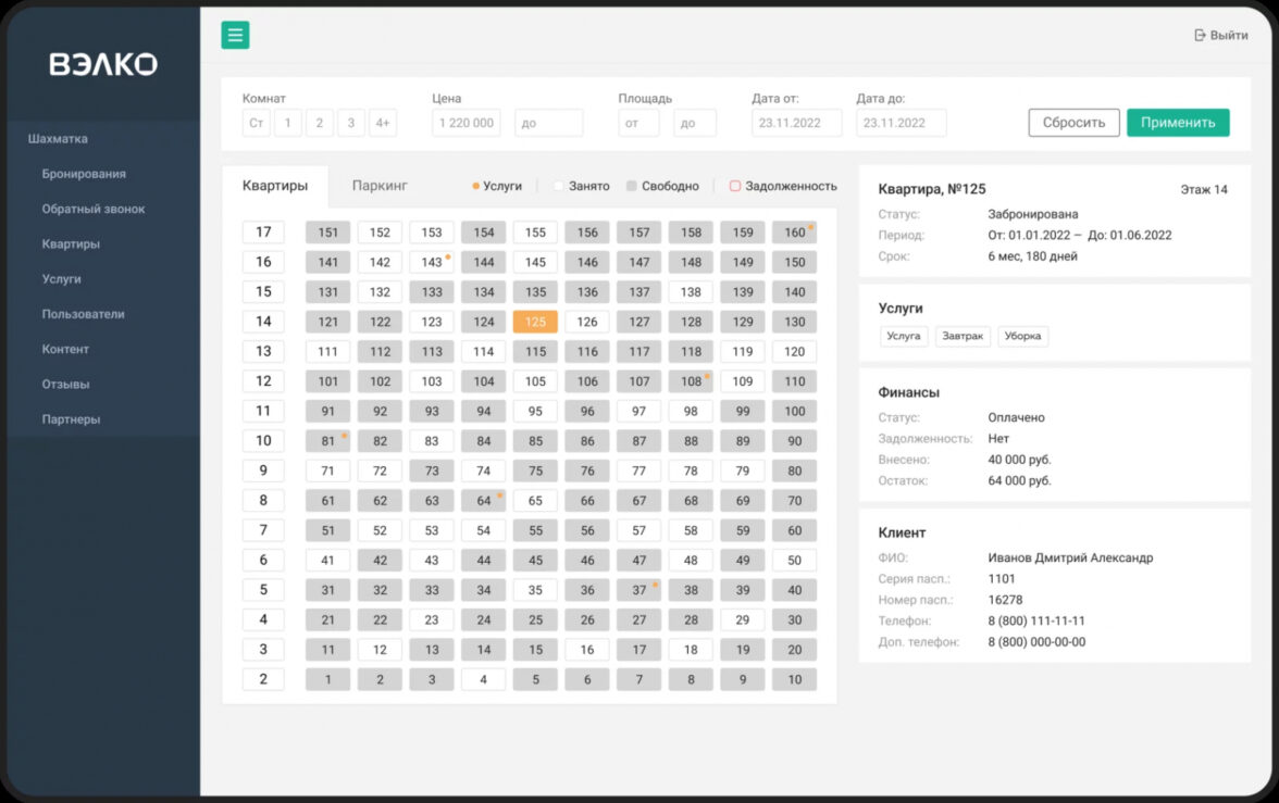 Администраторам приходится держать в голове кучу важных нюансов. Наша административная панель как нельзя лучше решает эту проблему. Многие вещи, которые раньше отнимали время, сейчас решаются по клику. «Вэлко» окружают своих жителей заботой и комфортом, а разработанный нами сервис помогает им в этой нелегкой работе.