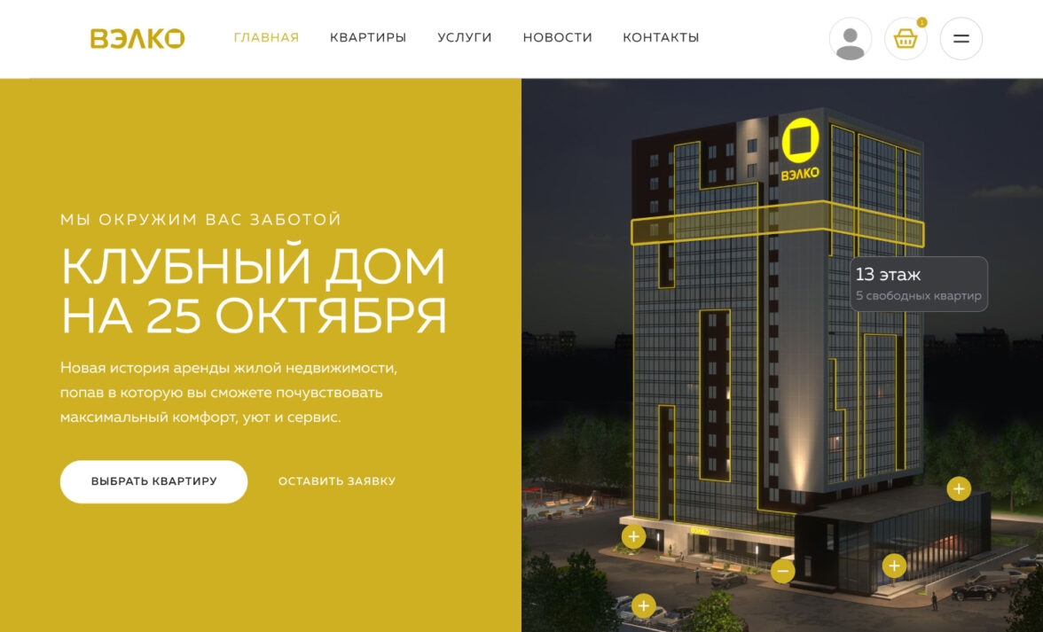 Клубный дом «Вэлко» дает пример нового формата цивилизованной и комфортной долгосрочной аренды. Сайт получился удобным не только для жильцов, но и для работников. Проект уже показал свою востребованность — треть квартир обрели своих жильцов.