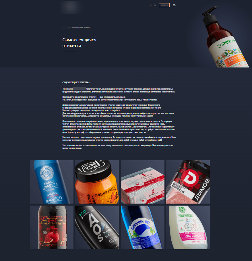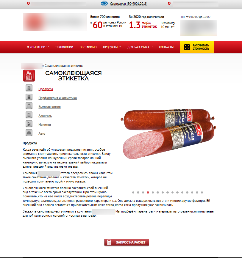 • Проект: сайт производителя самоклеящейся этикетки и упаковки