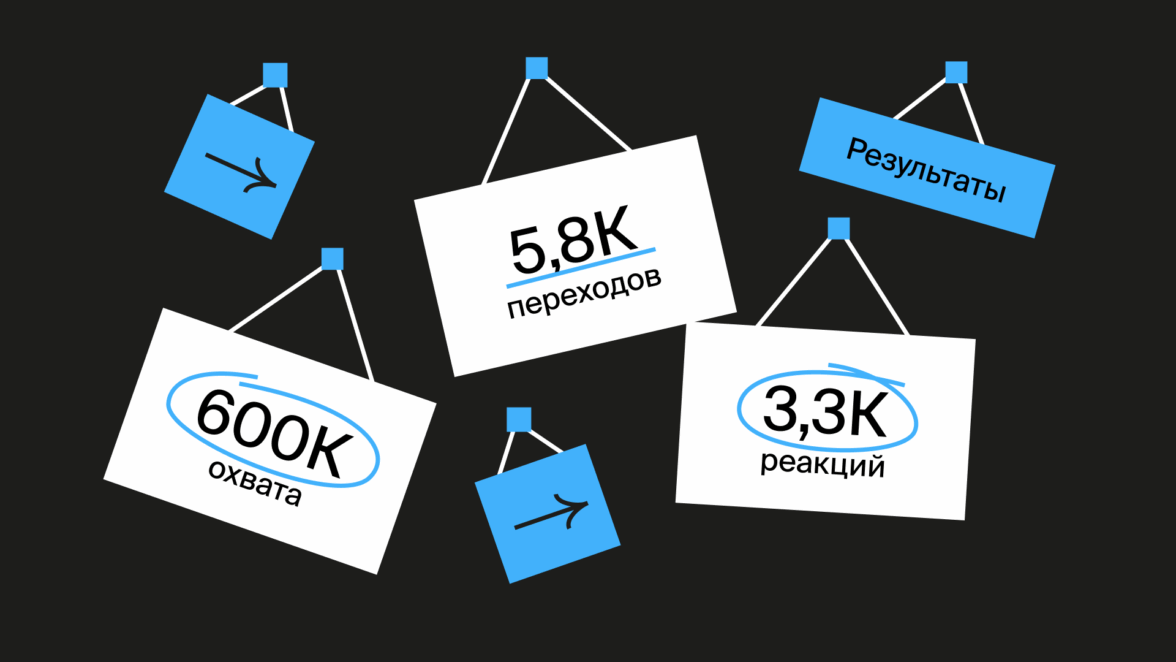 Если в цифрах: мы получили общий охват в 600К просмотров, 3,3К реакций на посты и 5,8К переходов.