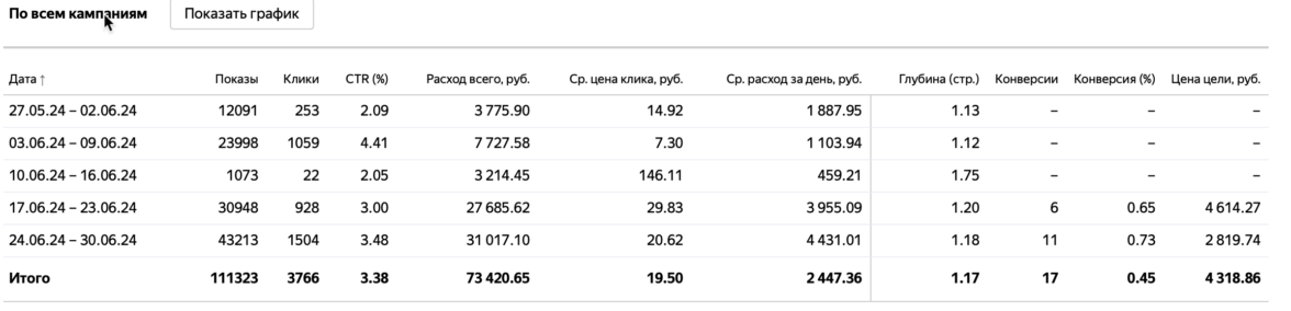 • Результат: 11 заявок, но стоимость одной заявки — 7006 рублей.