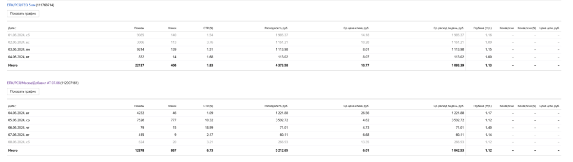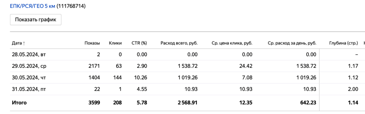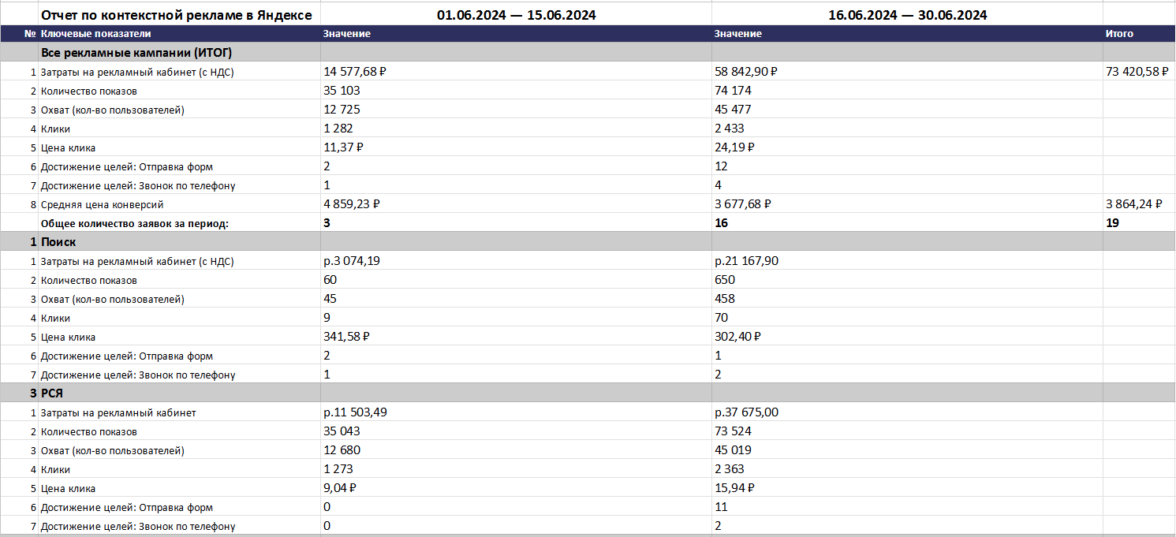 • Автотаргетинг в РСЯ не дал результата — были охваты, но без заявок.