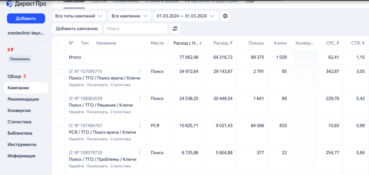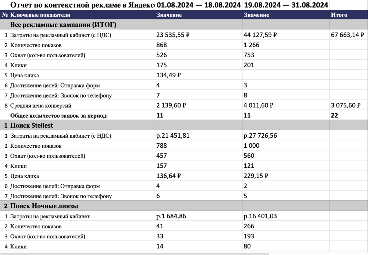 Клиника обратилась с запросом запустить контекстную рекламу в Яндекс.Директ и получать целевые заявки на прием врача офтальмолога и продажу линз stellest.