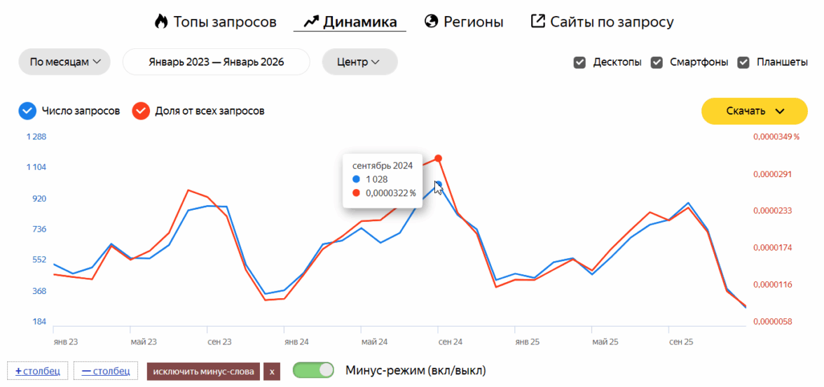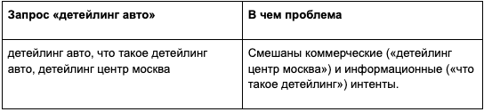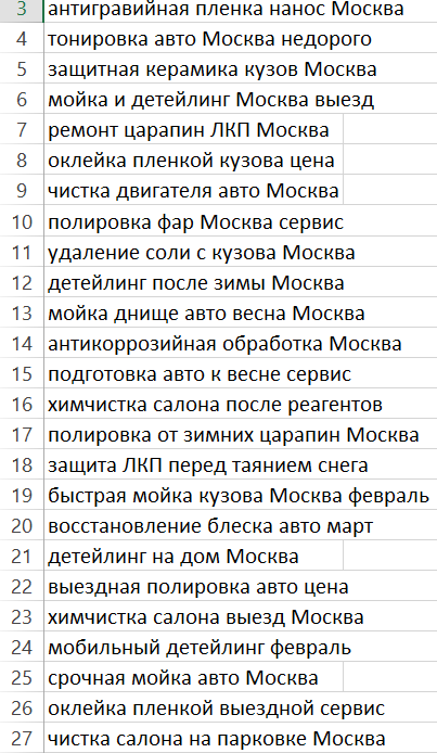 А если уточнить «коммерческие запросы детейлинг авто Москва, минус слова: бесплатно, торрент», то результат сильно улучшится.