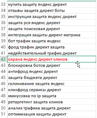 Например, формулирует несуществующие long-tail запросы: «защита яндекс директ» → «охрана яндекс директ кликов», которых нет в реальной семантике.