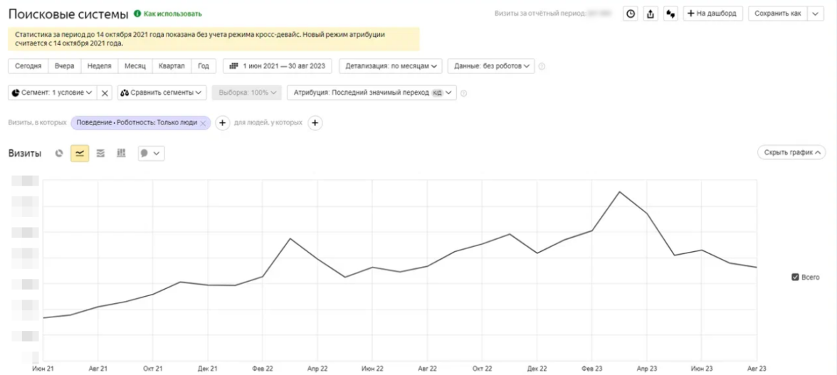 Рост органического трафика: визиты увеличились более чем на 394%, достигнув своего пика в марте 2023 года по сравнению с минимальными показателями в июне 2021 года. К августу 2023 года трафик стабилизировался на уровне, который на 60% выше базового уровня.
