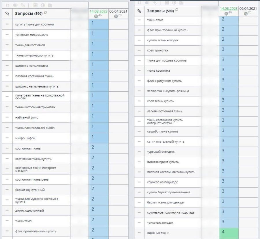 За время продвижения интернет-магазина тканей были достигнуты значительные улучшения, сделавшие сайт более видимым и удобным для пользователей: