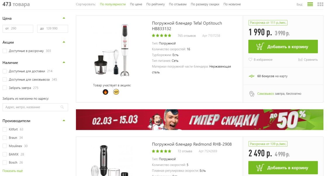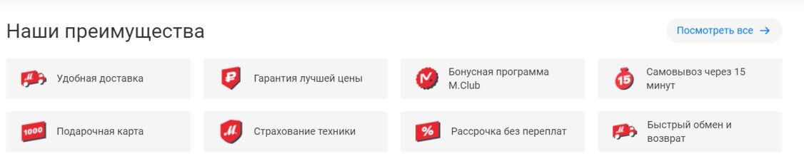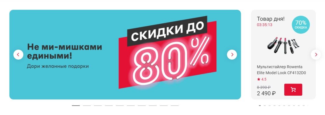 Баннеры. Они могут содержать акционные предложения, либо ссылки на сезонные разделы, которые будут регулярно обновляться в зависимости от текущего спроса
