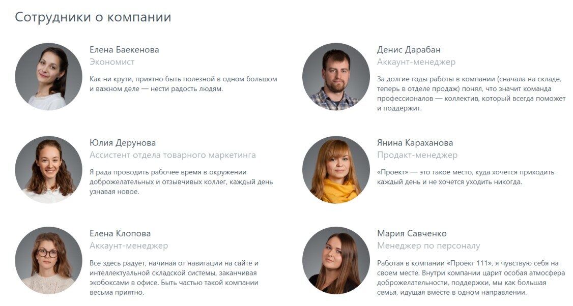 Информация о людях, работающих в компании, поможет потенциальным клиентам увидеть, с кем они будут иметь дело, обращаясь к вам за услугами или товарами.