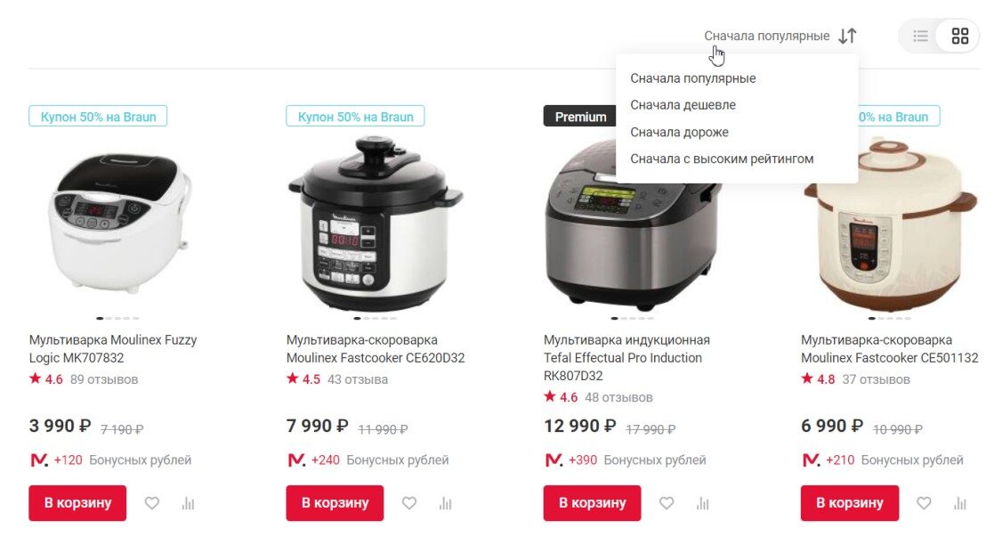 Листинг продукции имеет главной целью максимально удобное представление списка товаров выбранной категории.