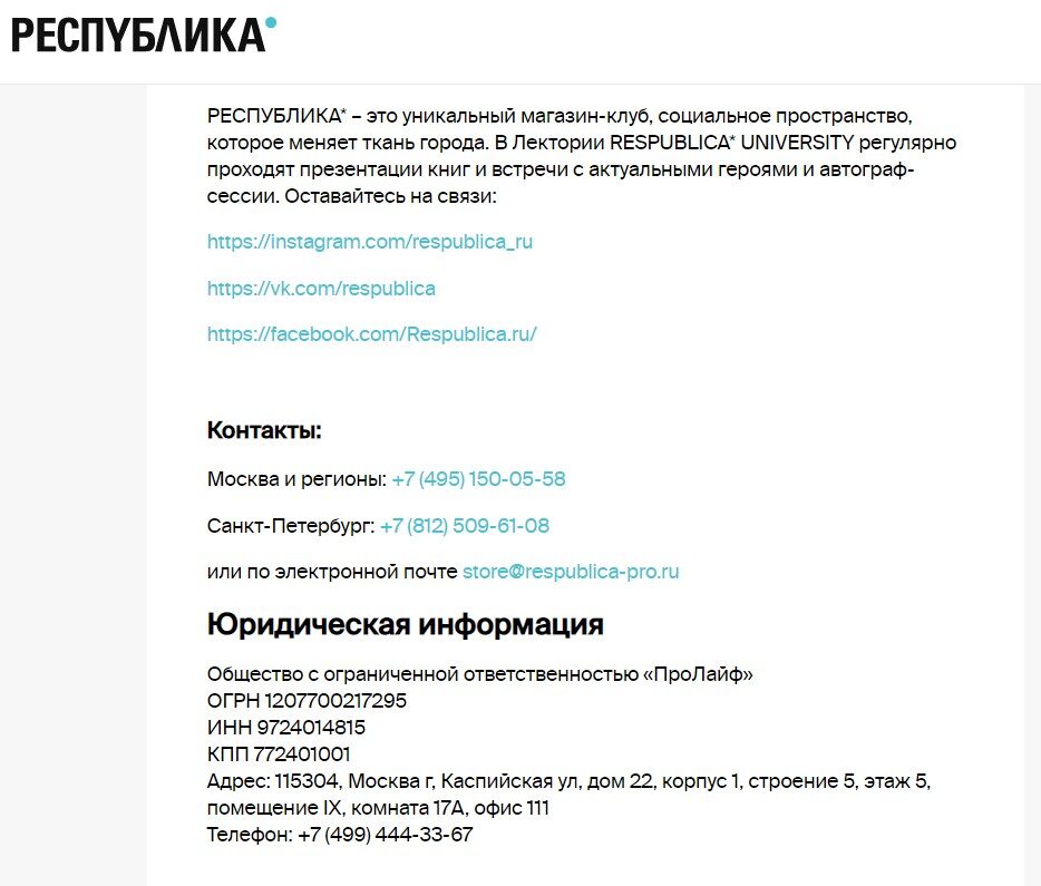 Реквизиты. Подчеркивает тот факт, что вы являетесь официально зарегистрированной компанией и торгуете с соблюдением законодательства. Добавьте, как минимум ИНН, юридический адрес организации, ОГРН, ФИО генерального директора