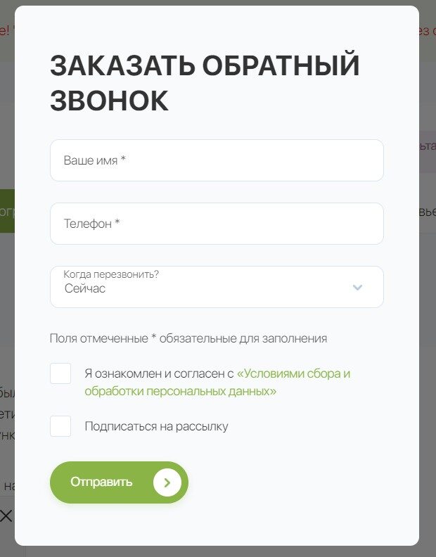 Форма заказа обратного звонка. Клиенту не придется звонить самому. важно оперативно реагировать на подобные запросы. Если вы не можете реализовать круглосуточную обратную связь, лучше укажите об этом в форме — в какие часы операторы могут осуществлять вызовы по запросу клиента