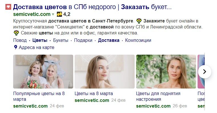 Микроразметка. Позволяет вывести в сниппете рейтинг, цену товара, изображение. Также «хлебные крошки», оформленные в микроразметке, смогут отражаться в сниппетах в текстовом формате (а не в формате url сайта) и показывать вложенность страницы в структуре сайта.