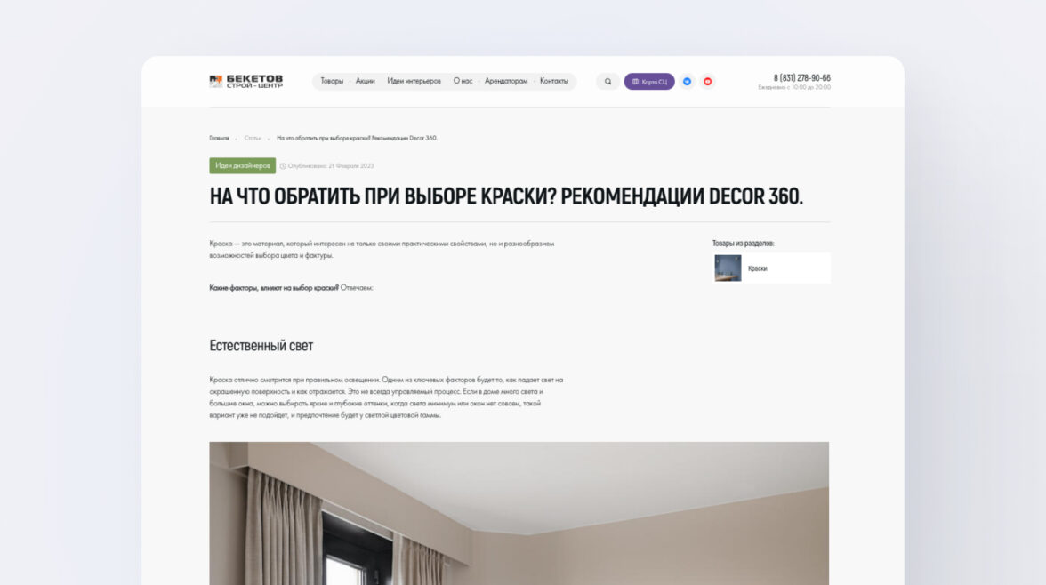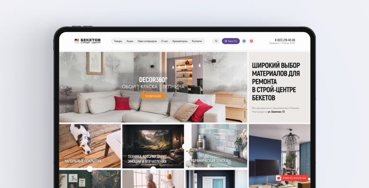 Клиент — Строй-Центр «Бекетов», торговый центр в Нижнем Новгороде, который специализируется на товарах для строительства и ремонта. На 10 тыс м² устроились более 120 салонов и шоурумов.