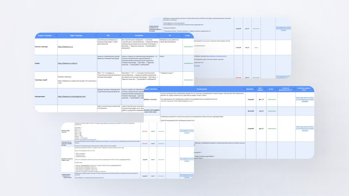 Вернемся к примеру — сайту стройцентра. Покажем, какой план работ после аудита мы воплотили.