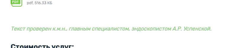 Большинство клиник хорошо прорабатывают страницы услуг, размещают подробное описание, показания и противопоказания, стоимость услуги и первичного приема врача.