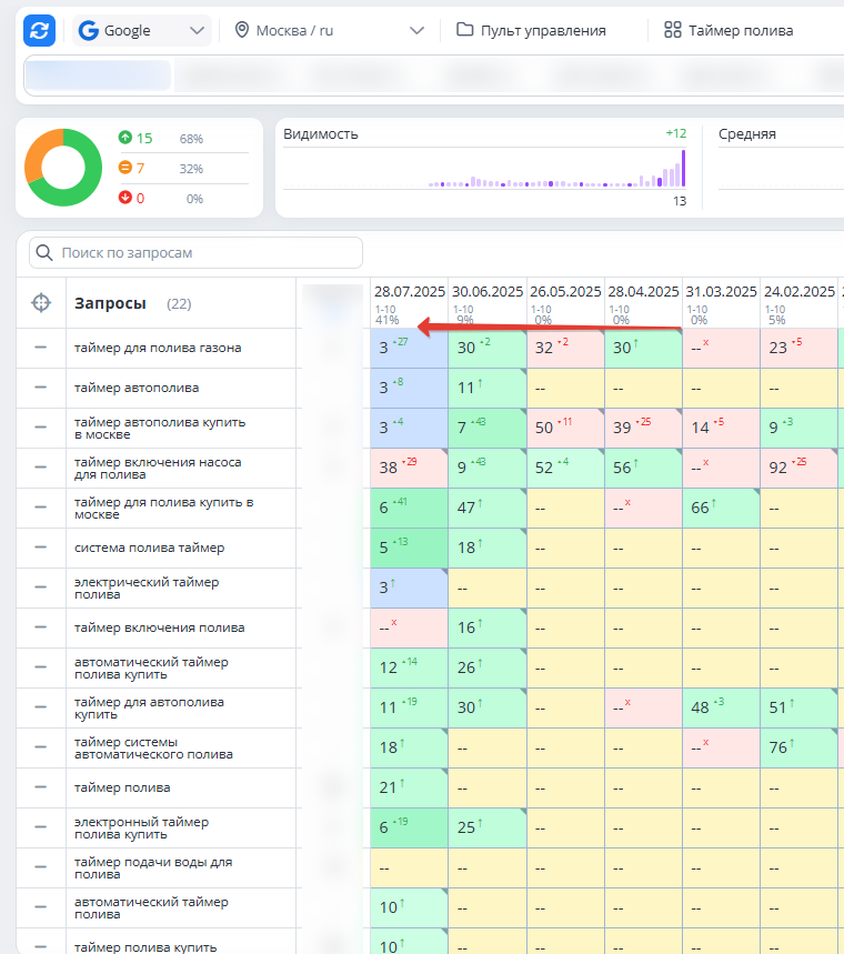 Результат: гипотеза подтвердилась. Видимость сайта по региональным запросам заметно выросла:
