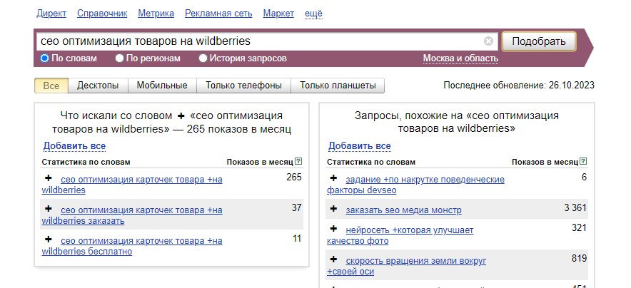 Всего для семантического ядра достаточно будет до 10 фраз. СЕО на Wildberries подразумевает их использование в названии, а также описании товаров и характеристик. При сео-оптимизации карточки, самых популярных высокочастотных запросов достаточно использовать одну треть, и еще половину низкочастотных.