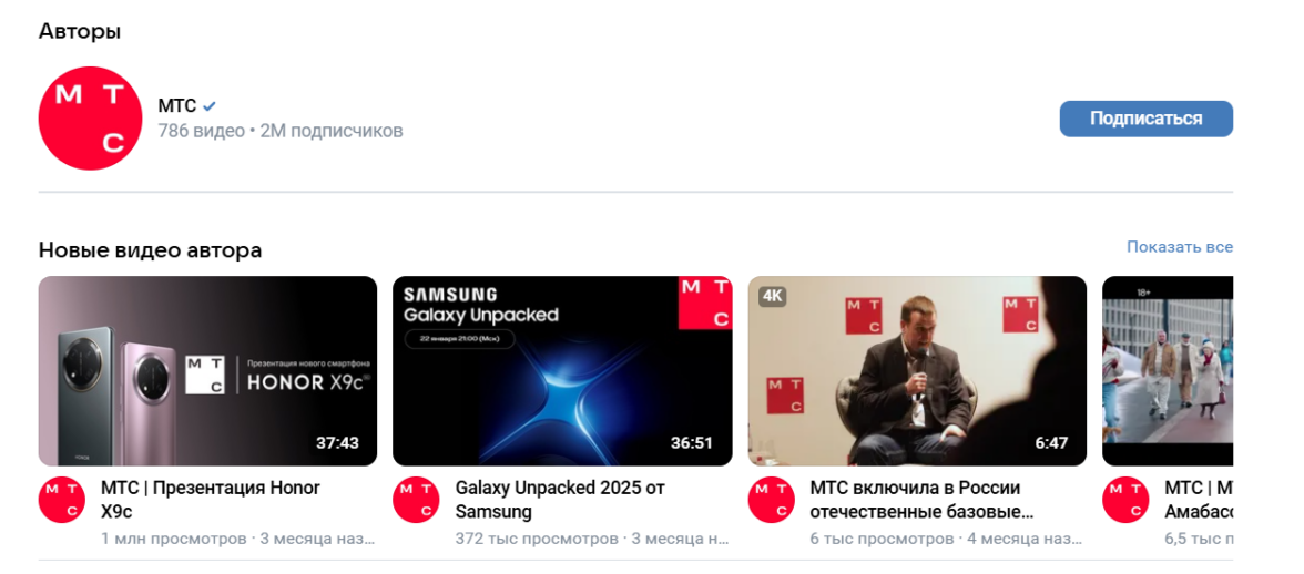 Канал МТС на платформе VK Видео