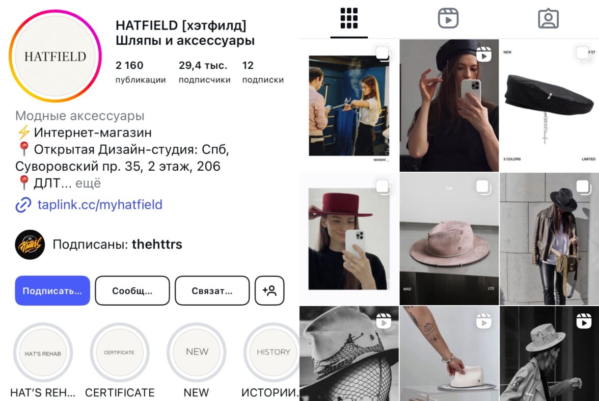 Производитель шляп Hatfield сумел развить свой аккаунт в Instagram*, публикуя разнообразный контент, касающийся их продукта. Так компания получила большую аудиторию потенциальных клиентов (поскольку не интересующийся шляпами человек не подписался бы на аккаунт). Эта аудитория приносит органический трафик на сайт компании, где происходят продажи.