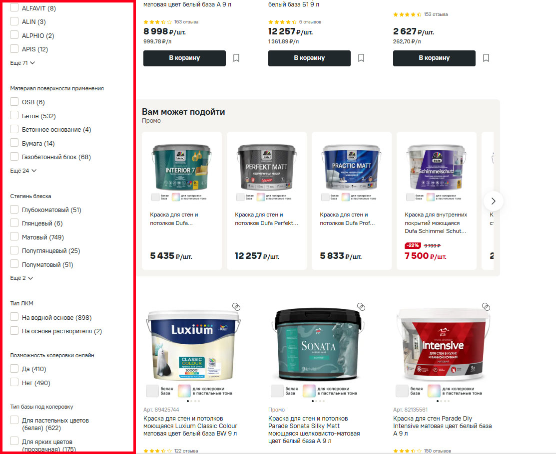 Большинство покупателей ищут товар не в общем виде, а по конкретным параметрам: