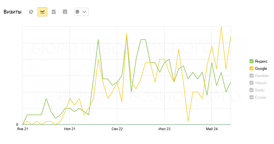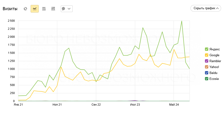 Целевой трафик из SEO 2.3 тыс в месяц из Яндекс и Google.