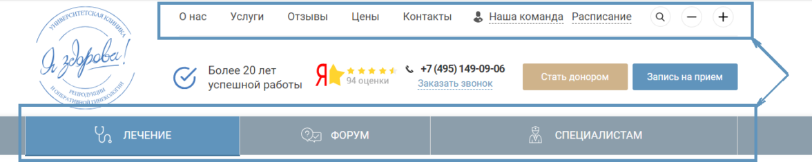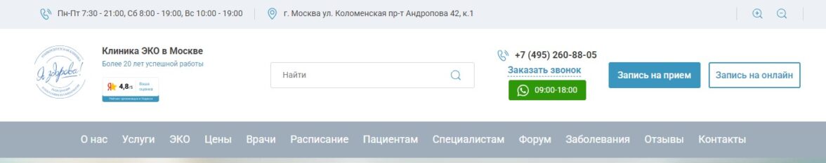 кнопка записи на приём в липкой шапке сайта, которая всегда перед глазами у посетителей;