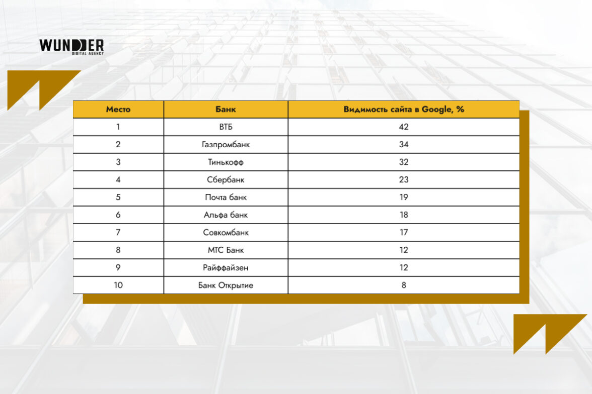 Топ-10 сайтов банков: видимость в Google