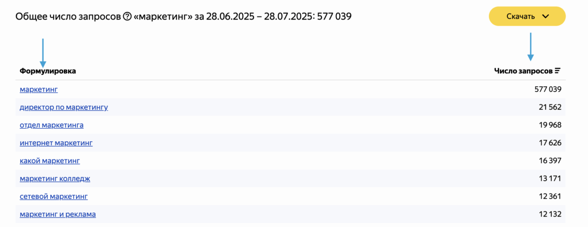 Яндекс Вордстат предоставляет статистику по запросам поисковой системы.:
