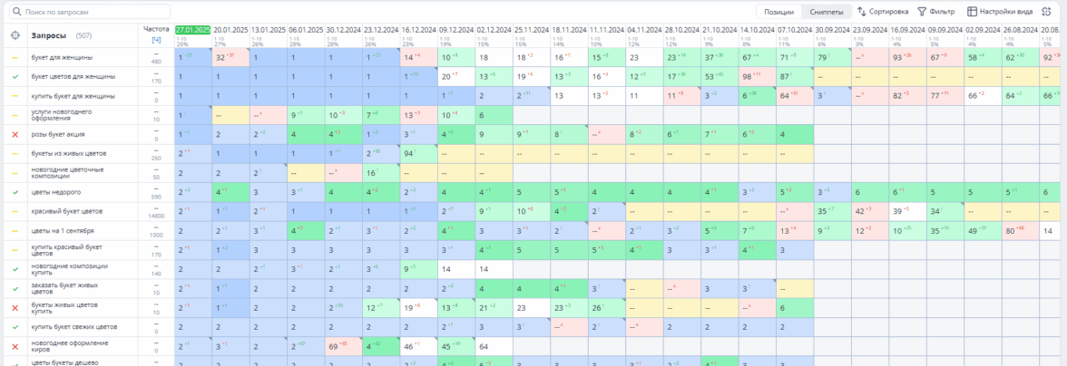 Продвигать сайты в нише флористики всегда непросто — конкуренция высокая, а ассортимент у клиента был ограниченным. Плюс каталог работал скорее как портфолио: букеты можно заказать, но итоговая композиция могла отличаться от фото из-за сезонности и наличия цветов. Все это вводило клиентов в заблуждение и снижало конверсию и вызывало жалобы.
