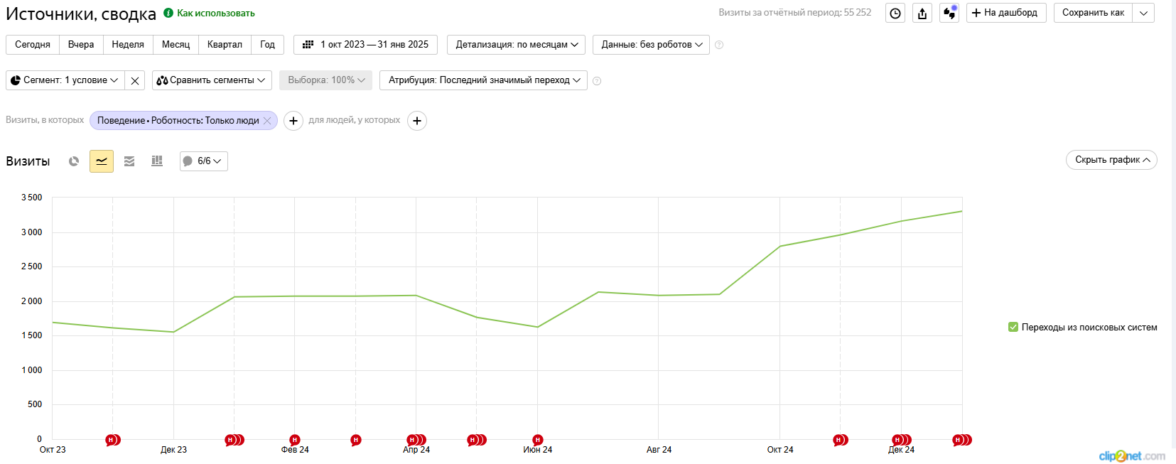 Рост органического трафика: в 2 раза (основной приток — запросы с коммерческим intent).