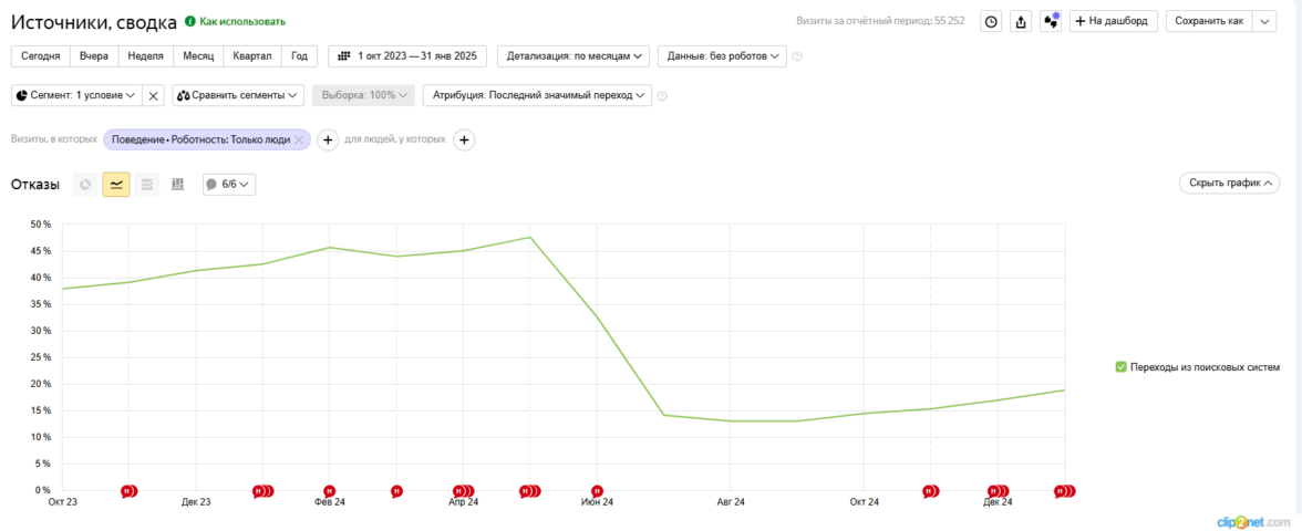 Результат: снижение отказов на 25%, улучшение позиций в выдаче уже через 2 месяца.