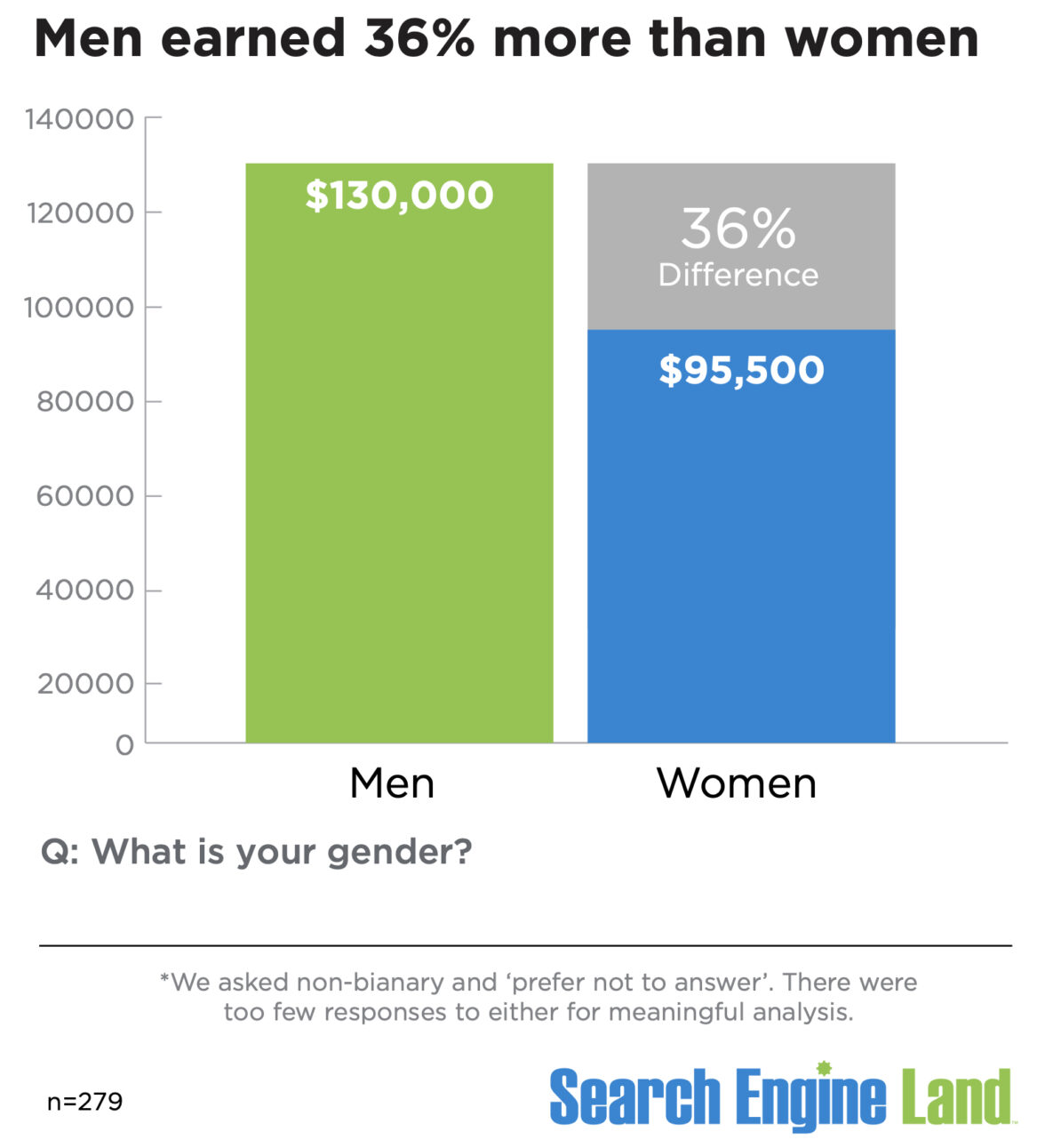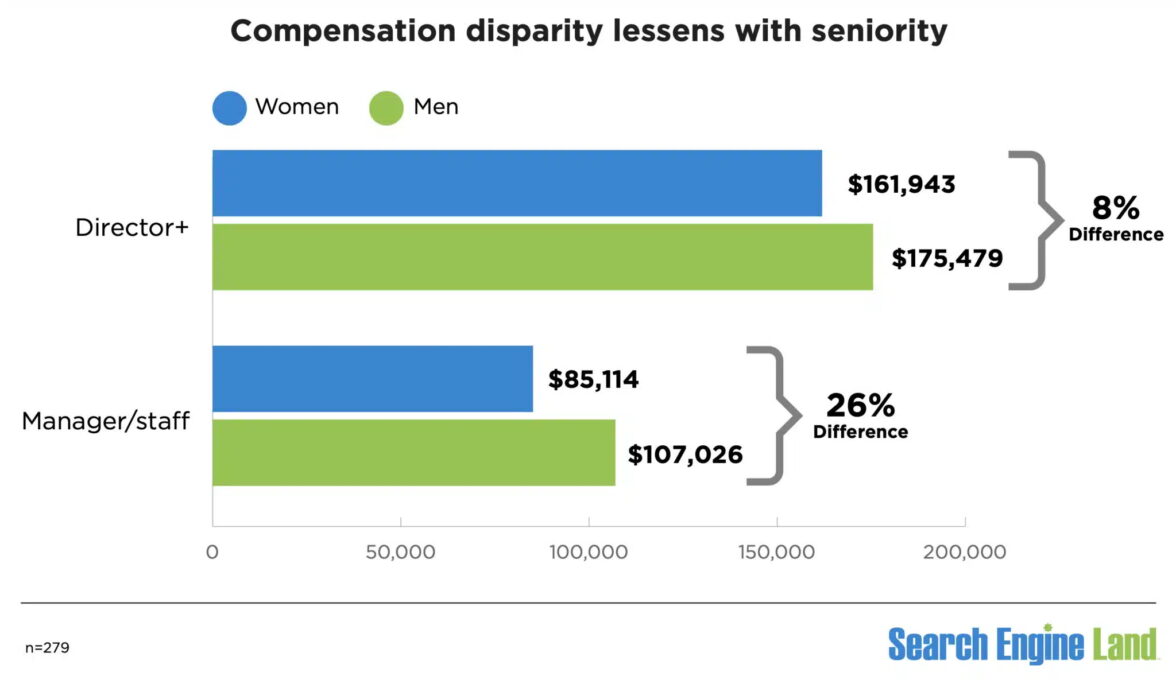 По данным исследования зарплат и карьеры Search Engine Land за 2024 год, SEO-специалисты мужчины зарабатывают в среднем $130 тыс. в год, а женщины — $95 тыс. в год. Разрыв составляет 36%. При этом аналитики портала отмечают, что с прошлого года эта цифра выросла на 10%.