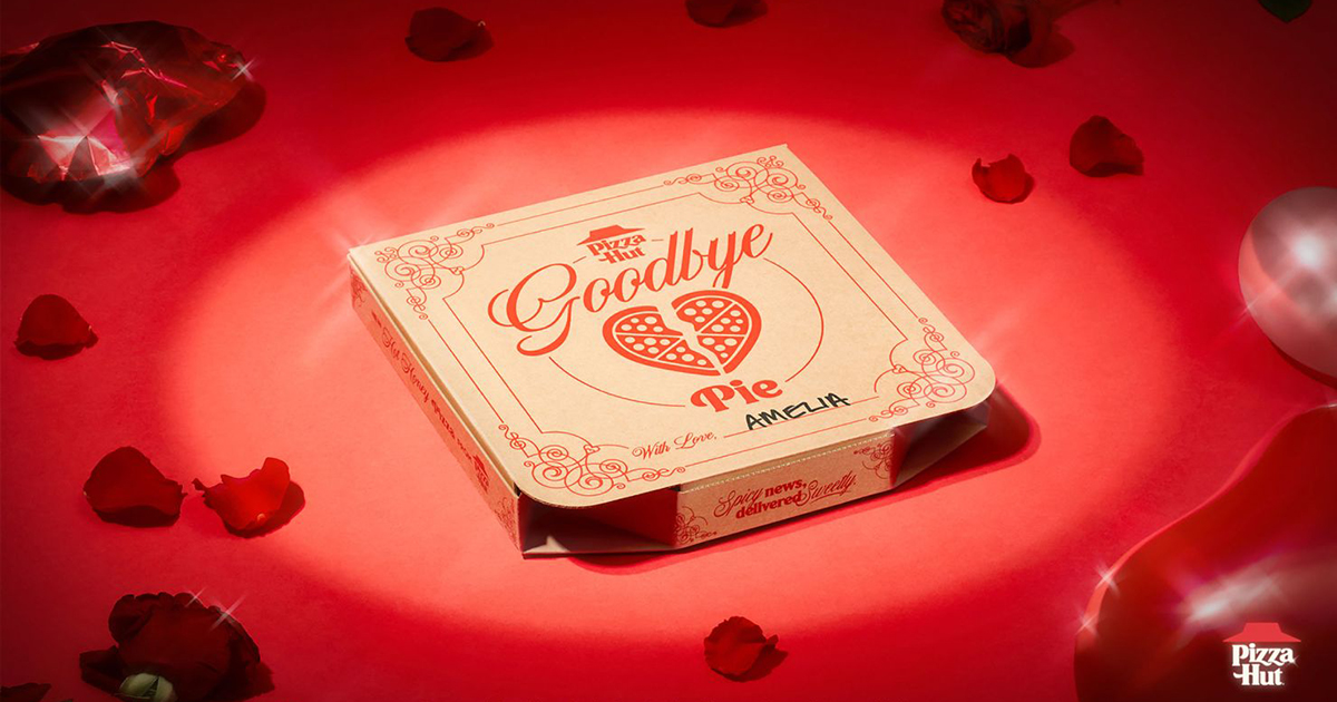 За неделю до «красного дня» компания предложила такие «пироги» совершенно бесплатно для тех, кто хочет расстаться со своим партнером, но не может об этом сказать лично. «Пока не бывшему» приходила медовая пицца Pizza Hut в коробке, на которой было место для личного сообщения от отправителя о расставании.