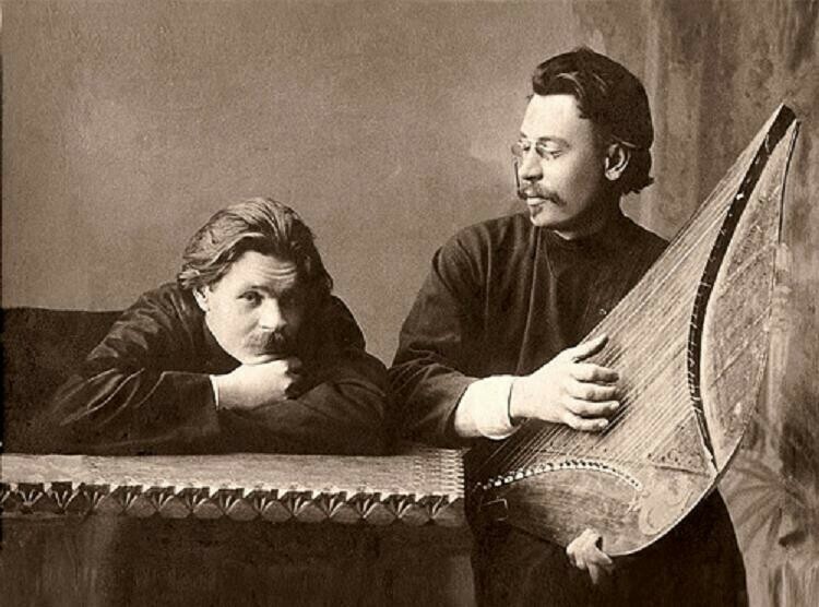 А уж Скиталец — по паспорту Степан Гаврилович Петров! Вы о нем и не ведаете. А это был модный среди дореволюционной интеллигенции прогрессивный писатель. Кстати, автор популярных романсов 1910-х. Их исполняли самые знаменитые певцы. Его книги издавали в СССР. Он не был бездарем. Он был не столь уж политически примитивным: не принял Октябрьскую революцию (хотя в итоге, как и Горький, все-таки принял). Но он попросту строил жизнь по Горькому. Есть их совместные фото. Та же прическа. Та же простонародная рубаха. Оригинал и копию на снимках отличало лишь то, что Скиталец носил очки. Горький, вероятно, был не слишком умен, если не понимал, что к плечу прилипла пародия на него.