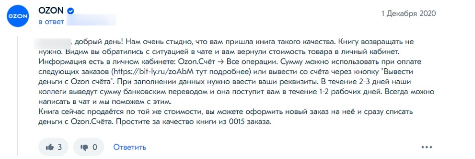 Ответ должен явно указывать на то, что вы прочли отзыв пользователя и действительно цените его.