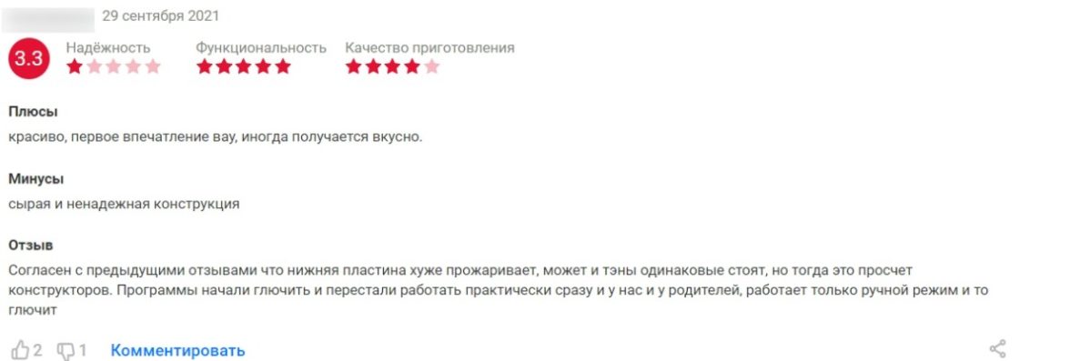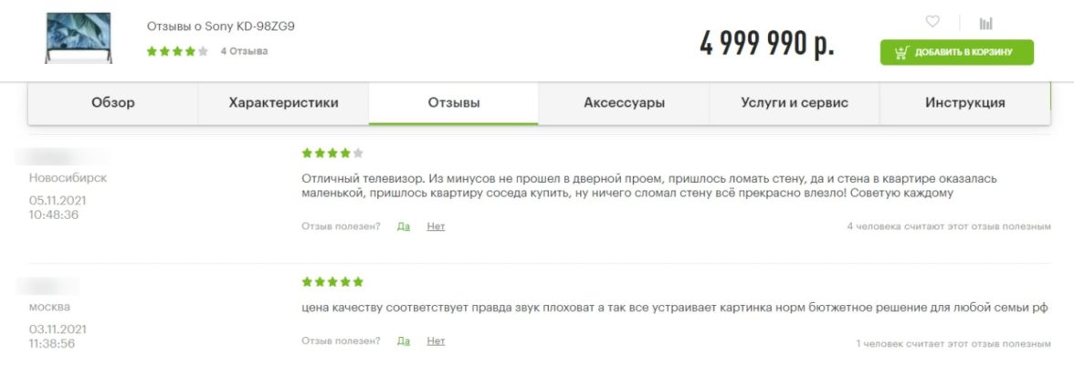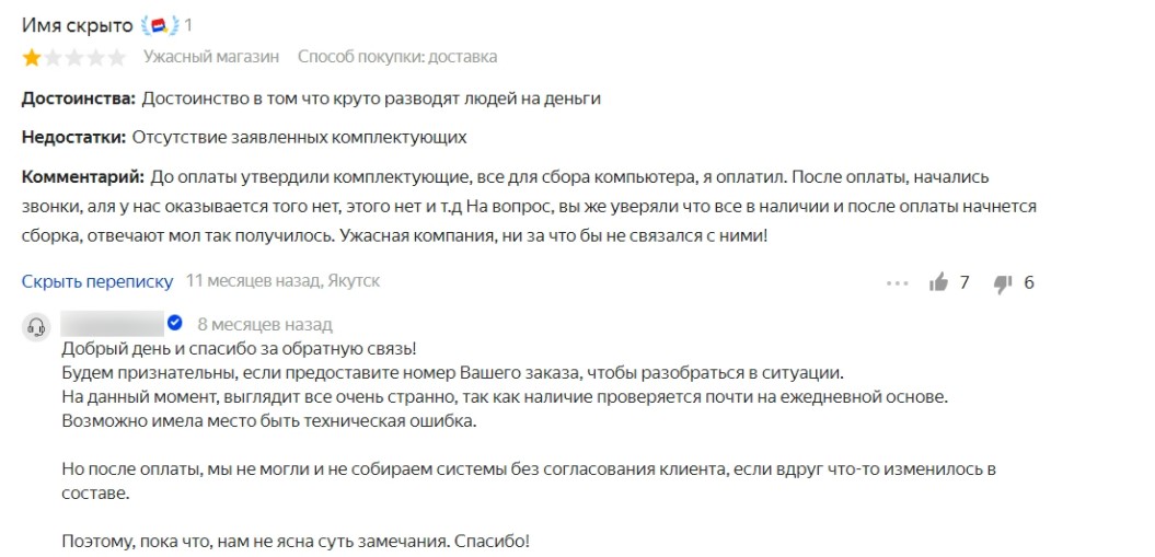 Пример конструктивного негативного отзыва на сайте М.Видео