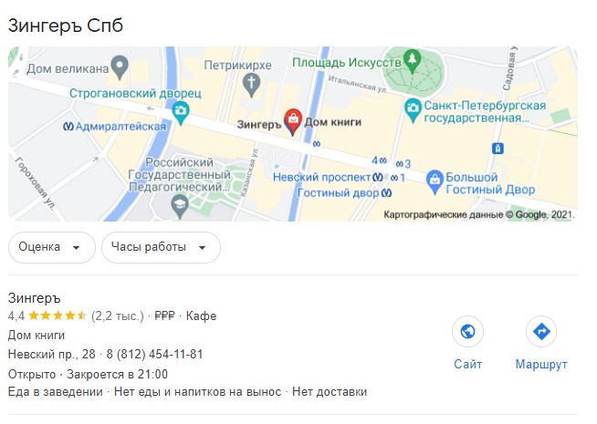 В ПС Google рейтинг выводится в блоках локальной выдачи, причем в рейтинге учитываются также оценки с независимых сайтов.