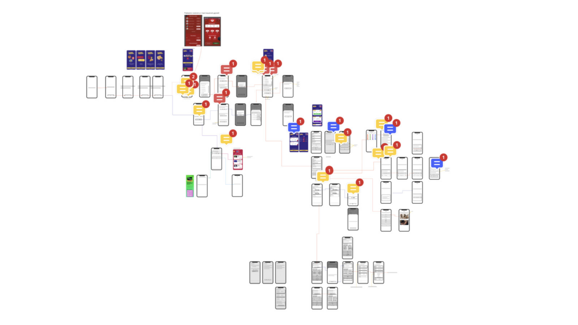 Когда все детали утверждены, мы разрабатываем карту экранов: берём все функциональные требования и формируем между ними переходы. После согласования карту экранов передаем на следующий этап — дизайн.