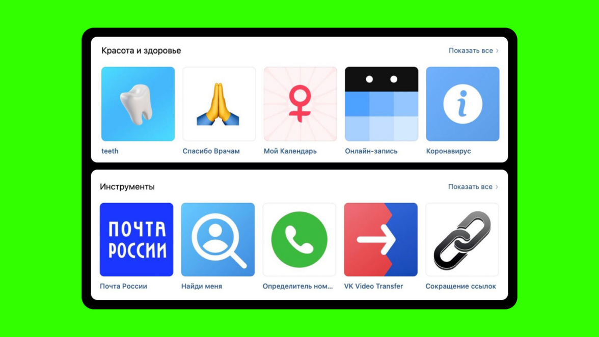 Большинство сервисов в VK Mini Apps создали независимые разработчики, которые не работают на VK. Если посмотреть каталог мини-аппов, то сразу выделяется разноплановость приложений. Здесь есть и сервис отслеживания посылок от Почты России, и трекер цикла для женщин «Мой Календарь», и сервис по поиску людей «Найди меня». Разработкой некоторых из них занималась наша команда.