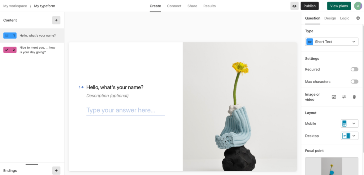 В Typeform доступен конструктор опросов, квизов и даже форм регистрации, через которые происходит лидогенерация. Сервис отличается стильными дизайнами шаблонов, которых более трёх тысяч даже в бесплатном тарифе.