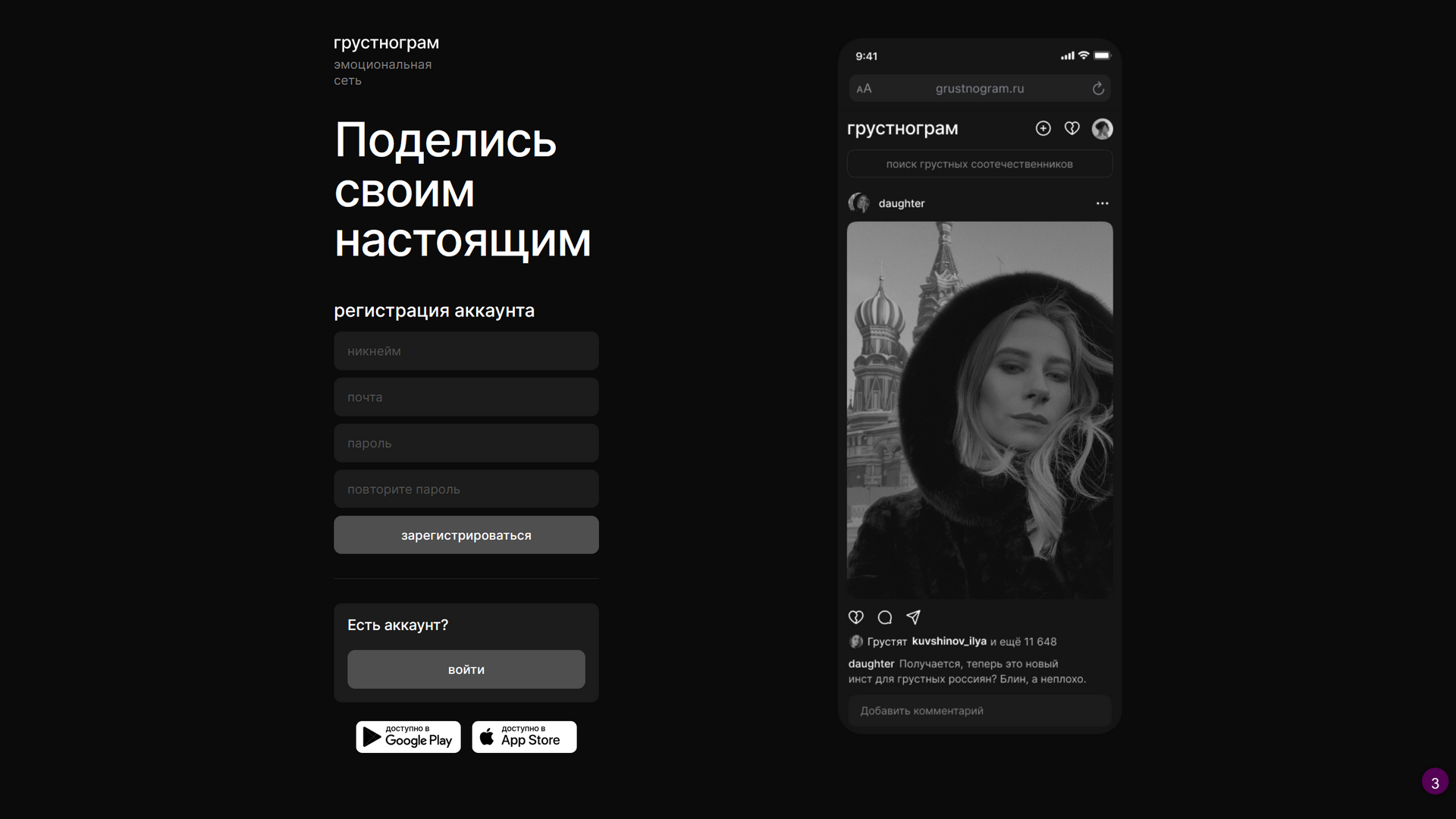 «Нам очень грустно от того, что многие качественные и популярные сервисы по разным причинам прекращают свою работу в России. И еще грустнее от того, какой редкостное говно порой пытаются выдать за импортозамещение. Мы создали грустнограм, чтобы вместе погрустить об этом и поддержать друг друга.»