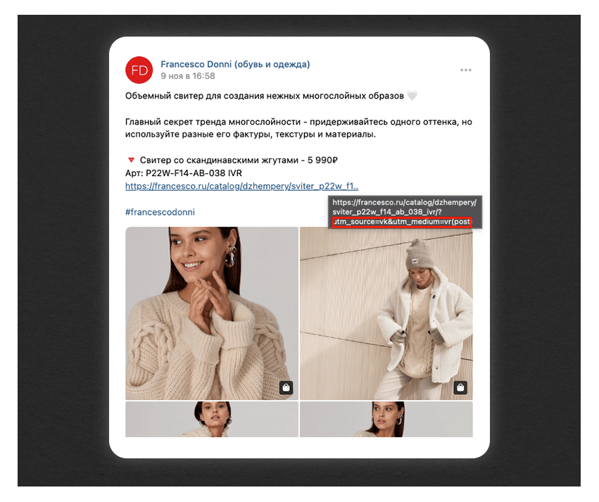 Рекламный пост, который размечен utm-метками