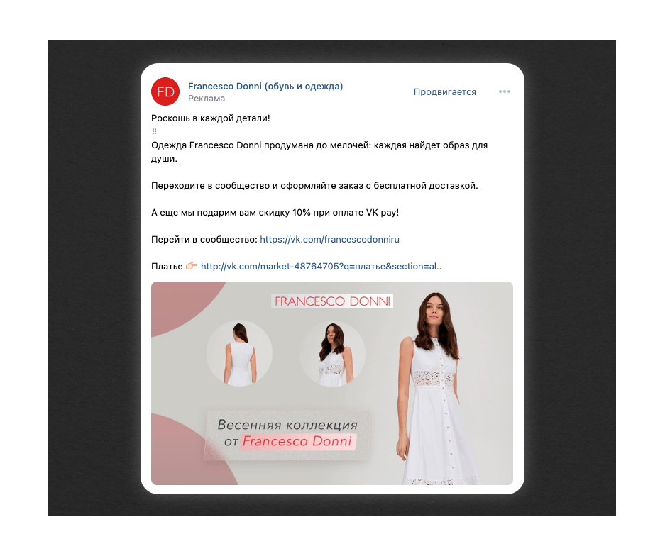 Сеть магазинов женской одежды Франческо Донни: перешли из нельзяграма во ВКонтакте и сохранили продажи на прежнем уровне